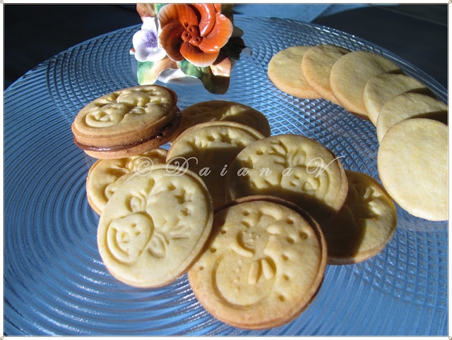 Forma de decupat si stampilele se trec prin faina la fiecare apasare, ca sa nu se lipeasca aluatul.